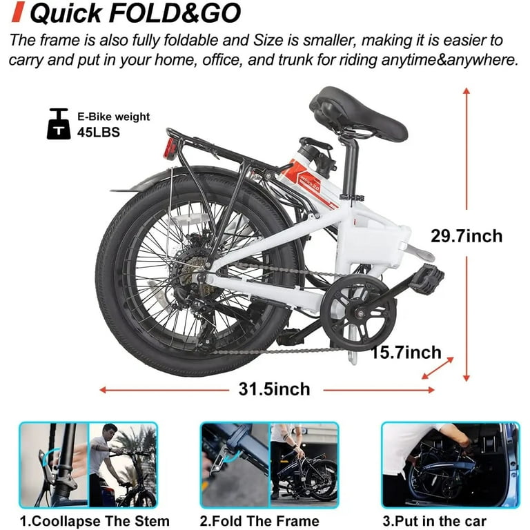 Hiland Rockshark Electric Bike Adult Aluminum 20 Inch Electric Folding Bike 250w 36v Motor Shimano 7 Speed Disc Brake Lightweight Aluminum Folding Ebike With Light Walmart Com